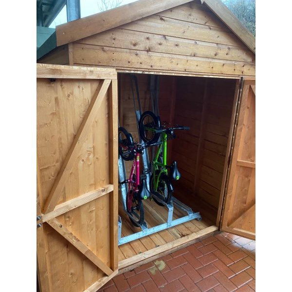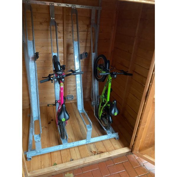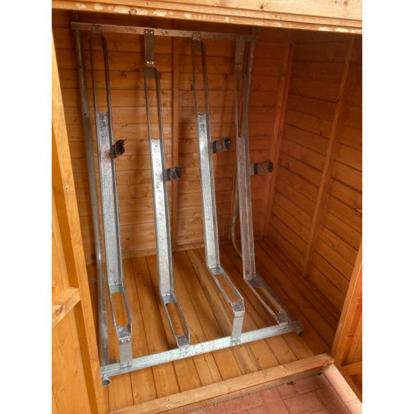 - Four space semi-vertical bike rack (fits into double door section). Holds up to four adult-size bikes.
